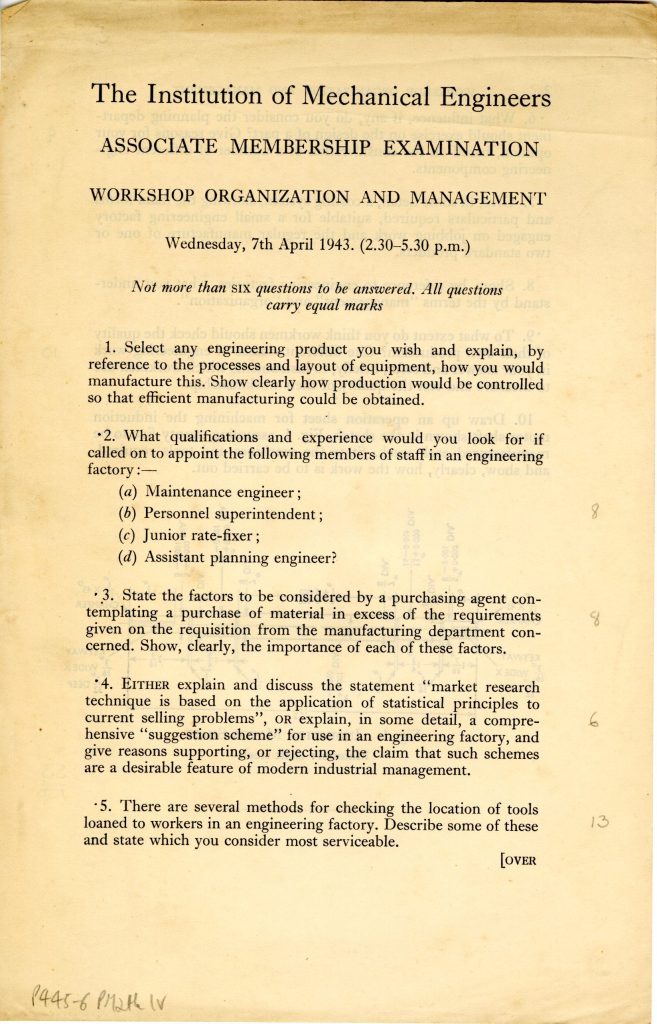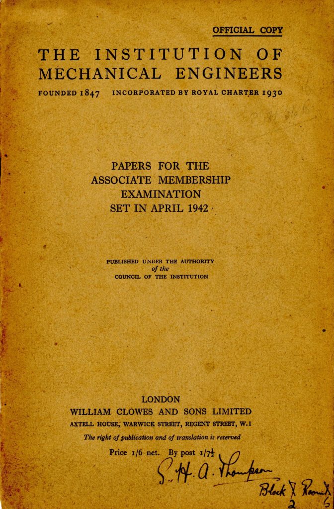 In early 1941 the IMechE council agreed that both members in service and Prisoners of War (POWs) should be allowed to sit examinations with a view to progressing through the classes of membership of the IMechE.