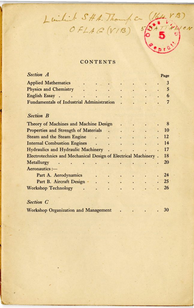Included within the Reader collection held at the IMechE archive are AM examination past papers. These past papers were available to be purchased by prospective students and used to gain useful insight into what might be expected of the exam itself. Past papers were found within the collection of Robert Reader and contain the censor’s stamp indicating that he and others within the camps had access to them as part of their preparation for taking the examinations.