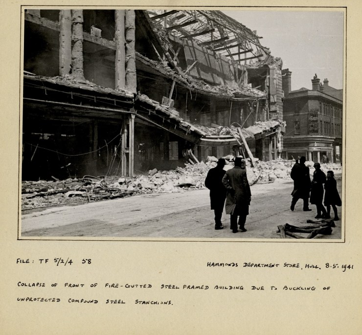 This photograph of Hammond’s department store in Hull on 8th May 1941, shows the: