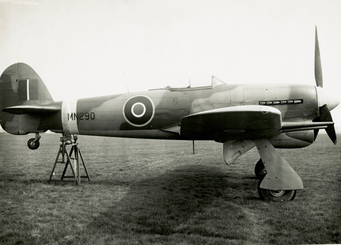 The Typhoon (often referred to by the RAF as the “Tiffy”) was a British Second World War fighter-bomber produced by British aircraft manufacturer Hawker.