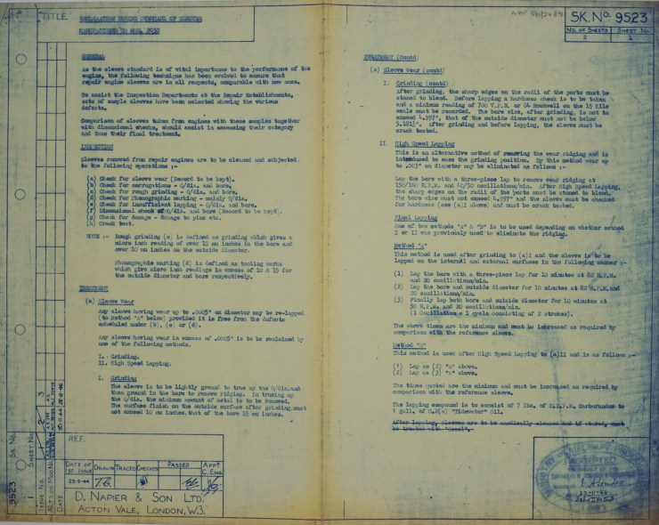 Napier Technical bulletin for the VA engine. The illustrative images used in this document were from the Sabre II engine – used in Hawker Typhoons and Tempests. [IMechE Archive NAP/6/2/1]
